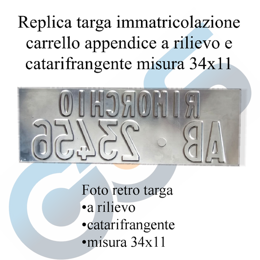 Replica Targa Rimorchio a Catarifrangente in Rilievo con Caratteri Battuti, Punzonati